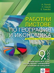 Първа част за 9. клас при обучение с интензивно изучаване на чужд език. ... Тематичните листове допълват учебника по география и икономика за 8. клас. Те съдържат различни типове задачи, които имат за цел да конкретизират и задълбочат учебното съдържание и да насочат учениците към практическо прилагане на придобитите компетентности, свързани с природата на Земята, природноресурсния ѝ потенциал и устойчивото развитие на географското пространство. Логическата и съдържателна структура на задачите е обвързана с изискванията на учебната програма. Тематичните листове може да се използват заедно с учебника или ... |