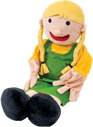 Терапевтичната кукла Маги е изработена от мек и приятен на допир материал, който създава усещане за комфорт и близост по време на игра. Благодарение на подвижните си глава, ръце и уста, куклата позволява реалистични движения и активна комуникация, което я прави ценен инструмент в обучителни и терапевтични занимания. Тя насърчава развитието на социални и езикови умения, подпомага взаимодействието и изграждането на емоционални връзки. Подходяща е както за индивидуални игри, така и за куклен театър у дома, а размерът ѝ е 75 cm. ... |