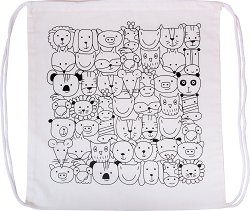 Мешката от KPC е изработена от 100% памук в бял цвят и илюстрация на животни. Подходяща е за боядисване с текстилни бои, маркери и контури. Допълнително може с помощта на лепило или пистолет за горещо лепене може да го украсите с различни апликации от филц, плат и фоам, мъниста, пайети и други декоративни елементи. Мешката е оборудвана с връзки за през рамо и стандартно стягащо се с презрамките гърло за пренасяне на малки принадлежности. Има правоъгълна форма с размери 38 x 42 cm. За да се осигури добро попиване на текстилните бои е добре предварително да се изпере при температура до 30°C без препарат и ... |