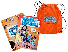 Комплектът съдържа: книга Трите ми прасенца от Диана Стоева - 112 страници с над 100 забавни случки и разкази от живота на едно многочленно семейство; Дневник за спомени с вашето дете - с твърди корици и 96 цветно илюстрирани подшити страници; практична мешка за спортни принадлежности. Трите ми прасенца Знаете ли, че след време, единствените хора, които ще помнят, че сте работили до късно, ще са децата ви? Често забравяме, че детството минава като миг - те само веднъж са малки. Най-ценният подарък, който можете да дадете на децата си е вашето време. То е всичко, от което те имат нужда. Не след дълго дребосъците ... |