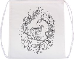 Мешката от KPC е изработена от 100% памук в бял цвят и илюстрация на русалка. Подходяща е за боядисване с текстилни бои, маркери и контури. Допълнително може с помощта на лепило или пистолет за горещо лепене може да го украсите с различни апликации от филц, плат и фоам, мъниста, пайети и други декоративни елементи. Мешката е оборудвана с връзки за през рамо и стандартно стягащо се с презрамките гърло за пренасяне на малки принадлежности. Има правоъгълна форма с размери 38 x 42 cm. За да се осигури добро попиване на текстилните бои е добре предварително да се изпере при температура до 30°C без препарат и ... |