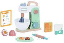 Малчуганите ще приготвят вкусни ястия с комплекта от Tooky Toy. Той съдържа миксер с купа, точилка, яйце, бисквитки, поднос, кутия с брашно, лист за отбелязване на продукти и масло. Комплектът е изработен от дърво, оцветено в ярки цветове. Бъркалката на миксера може да се върти с помощта на лоста в горната част. Освен това той разполага и с въртящ се бутон. Яйцето може да се разделя на две, тъй като вътрешната му част е с велкро лепенка. ... |