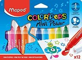 Флумастерите "Mini Power" от серията "Color' Peps" на "Maped" се предлагат в комплект от 12 ярки и интензивни цвята - жълт, телесен, оранжев, червен, розов, лилав, тъмно син, светло син, тъмно зелен, светло зелен, кафяв и черен. Те са чудесен начин да развиете въображението, креативността, фината моторика и творческото мислене на детето. С тях то ще може да твори, рисува, оцветява и вдъхва живот на всички идеи, които роди въображението му. Те разполагат с конусовиден връх и оставят плътна и равномерна линия с дебелина 6.5 mm за рисуване на фини детайли както и оцветяване на големи ... |