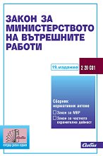19. актуализирано издание. ... В сборника е поместен Законът за Министерството на вътрешните работи, с който се уреждат принципите, функциите и основните дейности на МВР за осъществяване на политиките по защита на правата и свободите на гражданите, противодействие на престъпността, защита на националната сигурност, опазване на обществения ред и пожарна безопасност и защита на населението. Представена е уредбата на управлението и устройството на МВР и на статуса на неговите служители. Включен е и Законът за частната охранителна дейност, който урежда условията и реда за извършване на частна охранителна дейност, нейното ... |