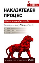 22. издание към 1 декември 2025 г. ... Представена е уредбата на наказателния процес - Наказателно-процесуален кодекс, Закон за специалните разузнавателни средства, Закон за защита на лица, застрашени във връзка с наказателно производство, Закон за екстрадицията и Европейската заповед за арест, Закон за Европейската заповед за разследване, Закон за признаване, изпълнение и изпращане на съдебни актове за налагане на наказание лишаване от свобода или на мерки, включващи лишаване от свобода, Закон за признаване, изпълнение и изпращане на актове за налагане на мерки за процесуална принуда, различни от мерките, изискващи ... |
