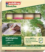 Комплектът от серията EcoLine на Edding съдържа 4 маркера в жълт, розов, оранжев и зелен цвят. Те са подходящи за акцентиране върху важни части от текста върху картон, обикновена, копирна и факс хартия. Корпусът им е изработен от 90% рециклирани материали. Имат подвижна капачка и широко тяло, което се побира удобно в ръката и не се търкаля по бюрото. Разполагат със скосен връх, а размерът на линията им е между 2-5 mm. Маркерите работят с мастило на водна основа в неонов цвят. Мастилото оставя плътен цвят и има неутрална миризма. Комплектът е идеално допълнение към всеки дом, офис или несесер за ученически ... |