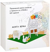 Комплектът е част от серията Stemico, където ще откриете още образователни продукти по темата. ... Вдъхнови откривателя в теб с комплекта "Моята ферма" от НЛП България! Комплектът е подходящ за деца между 4 и 8-годишна възраст. Той се състои от дървени фигури за сглобяване, основа за макет, вълна, кожа, пера, аксесоари, книжка с инструкции на български език и книжка с любопитни факти. Сглоби макета в кутията и разбери неговите принципи. Експериментирай с допълнителните материали и създай свой собствен проект, а после го сподели с приятелите си! Комплектът ще развива детския светоглед, неговото любопитство и ...