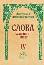 Четвъртият том от Словата на преподобни Паисий е посветен на семейството. В помощ на младите хора, пред които стои проблемът за това кой път да изберат в своя живот, е поставена въведителната глава Младите пред двата пътя на живота. В нея се подчертава, че и двата пътя, които е начертала нашата Църква - брачният и монашеският живот, са благословени. Младите според своите наклонности, сили и любочестие трябва без външен натиск и с доверие в Бога да изберат един от двата пътя. Основна предпоставка за техния напредък във всеки от пътищата, които ще последват, е да водят чист и духовен живот. В първата от шестте части ... |