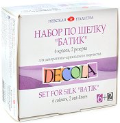 Текстилните бои за батик "Decola" от "Невская Палитра" са подходящи за нанасяне върху естествени и синтетични влакна като памук, лен, коприна и други платове. Нанасят се с помощта на четка за рисуване. Когато боите за батик се използват върху коприна, границите на изображението трябва да бъдат очертани с контурни линии, за да се предотврати смесването и преливането на цветовете. Боите съхнат за около 24 часа. След това се фиксират с ютия за 5 минути от обратната страна на рисунката, при температура, съгласно вида на използваната тъкан. Материите с ръчно рисувани декоративни елементи са с трайни и ярки ...