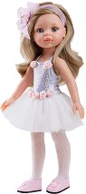 На пръв поглед красивата кукла от испанския производител "Paola Reina" прилича на колекционерска, но всъщност е създадена за игра. Изработена е от материали с най-високо качество, и е сглобена и декорирана на ръка. Оригиналната ѝ външност е дело на скулптори и дизайнери, като всяка кукла е уникално съчетание между външност и облекло, което ѝ придава индивидуалност. Характерно за куклите на "Paola Reina" е, че са ароматизирани с леко ухание на ванилия. Карла е с дълга руса коса, сини очи и реалистични мигли. Тя е балерина и е облечена с блестящо сребърно трико, бяла тюлена пола декорирано с ...