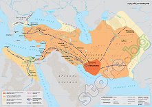 Характеристики: географска мрежа; хидрография; територия, населявана от перси около 2000 г. пр. Хр., територия на Персийската империя при цар Кир, завоювани територии от царете Камбриз и Дарий и други съседни територии, представени чрез фоново оцветяване; пустини; напоителни и плавателни канали; царски път; завоевателни походи и битки, спечелени от персите; столици и градове; надписи на хидрографията, орографията, персийките провинции и други; легенда. Картата е двустранно ламинирана. Изработена е от винил с пластмасови лайсни в долния и горния край и шнур на горната лайсна за окачване на картата. Размерите ... |