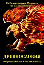 Съставител: Елеазар Хараш. ... "Само в истината расте силата. Истината е изящна и смъртоносна. Само едно е нужно - Бог да те докосне. Преди истината стихиите са като невръстни деца. Слънцето е онази доброта, която раздава светлина и живот. Слънцето е любовта, която твори Бог в нас. Древният ми показа собствената ми бездънност... и аз изгрях в себе си. Научих се да прониквам в световете без да влизам в тях. Ние сме същности на прасъщността. В нас няма сътворение и смърт. Върховният пожела да съм древен. Древният може да засияе в тъмнината, и в светлината. Всичко се решава от последния глас. Истината отключва най- ... |