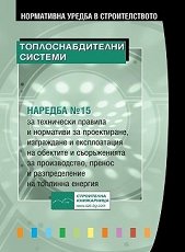Нормативна уредба в строителството. ... Наредба №15 за технически правила и нормативи за проектиране, изграждане и експлоатация на обектите и съоръженията за производство, пренос и разпределение на топлинна енергия - последно изменение ДВ, бр.6/2016 г. С наредбата се определят техническите правила и нормативи за проектиране, изграждане и експлоатация на обектите и съоръженията за производство, пренос и разпределение на топлинна енергия с топлоносител водна пара и гореща вода за битови и стопански нужди, които образуват топлоснабдителната система (ТСС). В приложенията на наредбата са включени и методиките за изчисляване. ... |