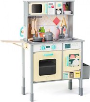 Детската дървена кухня Мия от Woodyland е многофункционална интерактивна играчка, създадена специално за малките любители на готвенето и ролевите игри. Със своя реалистичен дизайн и звукови и светлинни ефекти, тя осигурява автентично игрово изживяване, което развива креативността и въображението на децата. Компактната кухня включва разнообразни зони за игра – мивка, миялна машина, микровълнова фурна, кафе машина, пералня и черна дъска за писане. Всички тези елементи позволяват на децата да се потопят в реалистични ситуации от ежедневието и да развият социални и организационни умения. От едната страна на играчката има ... |