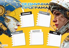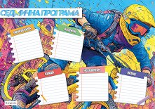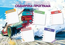 Ученическата седмична програма включва дните от понеделник до петък, както и отделение за учебната смяна. Към учебната програма са добавени и самозалепващи стикери с изучаваните през срока предмети. Така децата ще се забавляват докато подготвят новата си програма, която същевременно ще бъде и прегледна. Ученическата програма е формат A4 (с размери 29.7 x 21 cm). ... |
