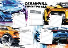 Напиши часовете от програмата за училище и бъди винаги подготвен със седмичните програми на Перфекта! Програмата допълва перфектно колекцията с ученически тетрадки Автомобили. Открий всички програми за училище на издателство Перфекта. ... |