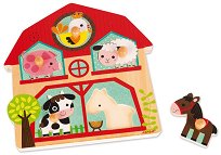 Детският музикален пъзел от Janod ще помогне на децата да разпознават различните видове животни и техните звуци. Когато някое от животните бъде поставено на правилното му място, детето ще чуе съответния звук, което ще му помогне лесно да ги различава. Звуците включват тези на прасе, овца, петел, крава и кон. Елементите са снабдени с дървени дръжки, които улесняват детето да ги хваща и поставя по-лесно. Дървеният пъзел разполага със система за включване и изключване на звука, разположена на гърба. Играчката работи с 2 батерии AAA, които са включени в комплекта с демонстрационна цел. Препоръчително е те да бъдат сменени ... |