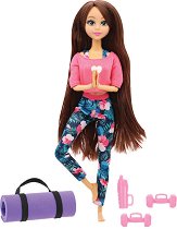 Комплектът е част от серията Dreameez, където ще откриете още играчки и аксесоари по темата. ... Ако вашето дете обича да играе с кукли, то този комплект ще бъде чудесен подарък. Той се състои от кукла йога инструктор, постелка, бутилка за вода и гирички. Тя е облечена в клин с флорален мотив, блузка, бели обувки и спортен сутиен. Крайниците на куклата са изключително подвижни, тъй като са изработени със специални сфери, наподобяващи истински стави. Благодарение на това детето ще може да движи краката, ръцете и главата ѝ. Ръцете могат да се движат в раменете, китките и лактите, а краката са подвижни в торса, ... |
