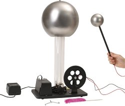 Уредът за учебни цели от NTL Austria представлява генератор на Ван де Грааф, който се използва за генериране на много високи постоянни напрежения в електростатични експерименти. Той е известен още като генератор за статично електричество - представлява ускорител на леки елементарни частици (лептони) и по-точно електрони. Доставя се с проводяща сфера на опора (D = ≈ 100 mm, опора L = ≈ 300 mm), хартиена втулка, заострено колело и трансформатор с постоянно напрежение. Има ръчно задвижване или чрез мотор с фиксирано захранване. Освен основата с генератора, който генерира високото напрежение, има и аксесоари за ... |