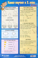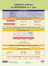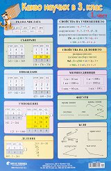 В таблиците е представено най-важното от учебното съдържание за 3. клас, свързано с: числата до 1000: записване, четене; сравняване; образуване на редицата на числата до 1000; представяне на числата като сбор от редни единици; връзки между редните единици; събиране и изваждане на числата до 1000; умножение и деление на числата до 1000 с едноцифрено число; разпределително свойство на умножението и делението относно събирането; намиране на част от цяло (половинка, третинка, четвъртинка и десетинка); намиране на неизвестно умаляемо и неизвестно делимо; текстови задачи в косвена форма и графично представяне на текстова ... |