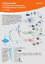 Справочникът по компютърно моделиране и информационни технологии за 5. клас е с ламинирани страници и размери: 21 x 29.7 cm. Справочникът съдържа: мисловна карта на компютърната система; изглед на диалогови прозорци; правила за безопасна работа в интернет; често срещани файлови разширения; често срещани клавишни комбинации в Paint, Word, Excel; основни алгоритми на Scratch; основни понятия по компютърно моделиране и информационни технологии за 5. клас. Учебната система по компютърно моделиране и информационни технологии за 5. клас на издателство Атласи се състои от: учебник учебна тетрадка ... |