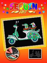 Творческият комплект "Скутер" от Sequin Art ти предоставя възможност да декорираш своя собствена картина с пайети. С нея можеш да украсиш стаята си, или да я подариш на приятел. Какво трябва да направиш: избери удобна маса или бюро, където да работиш. Извади материалите, а кутията използвай за пример как да декорираш картинката. След това нагласи изпринтирания шаблон така, че да пасва плътно в очертанията на стиропорената подложка и забоди по една карфица във всеки от четирите края, за да го фиксираш да не мърда. Остава да се заемеш с най-приятната част - декорирането. Избери пайета, промуши карфица през ... |