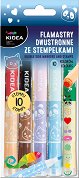 Двувърхите маркери с печати от Kidea съчетават практичност и забавление в един комплект. Всеки маркер е с два различни цветни върха и два уникални печата с очарователни дизайни като панда, цвете, сърце или звезда. Благодарение на тях децата могат да създават креативни декорации, да украсяват своите тетрадки, тефтери или учебници, както и да персонализират подаръци и поздравителни картички. Комплектът съдържа 5 маркера с общо 10 цвята, които превръщат ученето и творчеството в истинско удоволствие. ... |