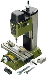 Мини фреза с устойчива чугунена основа, вертикално регулиране, координатна маса от алуминиева сплав, с фрезована повърхност и въртящи се нониуси. Балансираният двигател е устойчив и стабилен дори и при висока скорост. Тази стабилност и висока скорост на въртене на шпиндела улесняват използването на най-фини свредла с минимален диаметър. Работната маса е фрезована с три Т-образни канала 12 / 6 / 5 mm. Подвижната скáла на опорната стойка спомага за позиционирането на фрезерната глава. Подаването са осъществява чрез нониуси: 1 оборот = 1.0 mm; 1 деление = 0.05 mm. Свредлата се захващат чрез тройно разцепени цанги от ... |