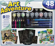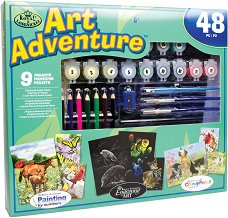 Комплектът от серията Art Adventure включва 9 творчески проекта за рисуване с акрилни бои по номерирани картини, гравиране по шаблон и оцветяване на номерирани картинки с моливи. За рисуването и оцветяването по номера: "Искам да рисувам като теб, мамо!" - често чуваме от децата си. Естествено - научаването изисква време, старание, малко талант и... подходящ учител. За последното, малките таланти могат да разчитат напълно на великолепните творчески комплекти, създадени от Royal & Langnickel, с които децата веднага могат да създадат собствено произведение на изкуството! Тайната на този "учител по ... |