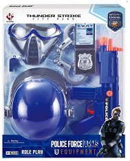 Всички деца си мечтаят за това какви "ще станат" когато пораснат и каква ще бъде професията им. За малчуганите, които са се ориентирали към полицейската професия, този комплект ще бъде добър старт. Той съдържа всички най-нужни инструменти и принадлежности, които биха потрябвали на един полицай. Детето ще открие 2 пистолета, заглушител, фенерче, значка, уоки токи, граната, динамит, белезници и маска. Така малчуганът ще е готов за своята специална мисия. За да е реалистична играта, единият от пистолетите разполага със светлинни и звукови ефекти. ... |