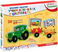 Пъзелът е част от колекцията Уча и се забавлявам, където ще откриете още образователни комплекти. ... Образователният пъзел "Веселият трактор - Учим азбуката и цветовете" от издателство Посоки е разработен съвместно с педагози и психолози и е подходящ за деца в предучилищна възраст. Комплектът включва 69 елемента, 34 от които са ремарке-части, с които ще можете да наредите пъзел с дължина 236 cm във формата на трактор с ремаркета. На всяка ремарке-част има по една буква и животно започващо с нея, което ще помогне на малчуганите да се запознаят с много и различни животни. Освен това с играта ще научат ... |