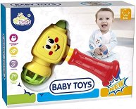 Бебешката дрънкалка е във формата на чук и ще зарадва вашето мъниче. Тя е изработена от пластмаса и е удобна за хващане от малките детски ръчички. В горната част дрънкалката разполага със сфера пълна с малки топчета, които ще издадат забавен звук, когато малчугана разклати играчката. Чукът разполага с безопасна гумена страна, с която детето може да чука различни повърхности. Играта с играчката ще развие двигателните умения и координацията око-ръка на вашият малчуган. ...