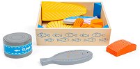 Какво ще хапнем за обяд? След дълга разходка ни трябва нещо вкусно. Какво ще кажете за прясна рибка? Комплектът от Bigjigs Toys е подходящ за деца над 3-годишна възраст и се състои от щайга с фигурки на риба и морски дарове. Елементите са изработени от дърво, боядисано с безвредни бои на водна основа. Комплектът е подходящ за игра на магазин, ресторант или семейство. Щайгата е с размери 18 / 5 / 14.5 cm. ... |