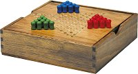 Китайската дама от "Барт" е изработена от дърво, а пуловете са пластмасови. Целта на играта е да си първият, който ще премести 6 пула на отсрещната страна. Правила на играта: Всеки играч избира цвят и поставя съответните пулове върху един от двата триъгълника със същия цвят. Играчите се редуват като по време на хода си всеки от тях мести по един от своите пулове. Възможните движения са две - единичен ход и прескачане. При единичен ход играчът избира един от пуловете си и го премества в съседно поле, което е празно. За съседно поле се смята всяко поле, което е свързано с черта със полето, в което се намира ... |
