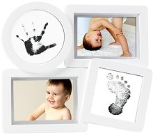 Създайте сами незабравим спомен с рамката на Pearhead. В нея може да сложите не само снимки с вашето малко съкровище, но и отпечатъци от неговите ръчичка и краче. Комплектът се състои от 2 карти за отпечатъци, 2 тампона с чисто мастило, с които да направите отпечатъците и 2 подложки за снимки с размери 3” x 4” или 7 x 10 cm. За да създадете желания от вас отпечатък трябва просто леко да притиснете ръчичката или крачето на бебето върху Clean Touch подложката с мастило. Така ще получите детайлен отпечатък, а кожата на детето няма да докосва мастилото. Рамката е с приблизителни размери 29 / 25 / 2.55 cm, а подложката с ... |