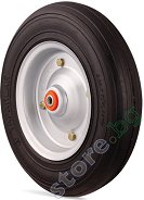 Резервно бандажно колело за ръчна количка с външен диаметър ∅ 335 mm. Вътрешният отвор е с диаметър ∅ 20.4 mm. Бандажът е изработен от каучук, а джантата - от щанцована ламарина. Товароносимост: 100 kg. Цената е за 1 брой. ...