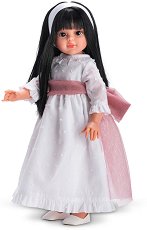 Куклата от Asi ще зарадва малчуганите. Тя е мека и приятна на допир, тъй като е изработена от висококачествен винил. Сабрина има тъмни очи, розови бузки, извити мигли и гъста тъмна коса с бретон, с която могат да се правят интересни прически. Куклата е с реалистични черти и естествени гънки на лицето, ръцете и коленете. Тя е облечена с официална бяла рокля с розов тюл и бели обувки като за бал или сватба. На косата ѝ има бяла лента. Сабрина има подвижни ръце, крака и глава, благодарение на които лесно може да се поставя в различни позиции. Тя е изработена с голяма прецизност и внимание към детайлите. Децата могат ... |