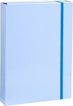 Кутията е произведен от цветен картон с плътност 350 g/m 2 и е покрита с UV лак. Подходяща е за съхранение на тетрадки, документи, хартия и листове с формат A4. Затваря се с три капака и ластик. Широчина на бокса е 6 cm. ... |