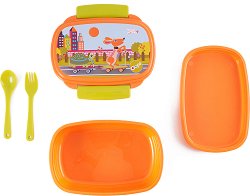Кутията за храна от Oops е симпатична и ще се хареса на всяко дете. Дори родителите ще останат доволни, когато разберат колко практична и удобна е тя. Комплектът се състои от кутия за храна, вградена чиния, която може да се вади, вилица и лъжица. Кутията се затваря здраво, посредством 2 закопчалки. Комплектът е изработен от пластмаса без съдържание на бисфенол. Кутията е с размери 18 / 12.5 / 6.8 cm. Важно: Кутията за храна не е препоръчително да се използва в микровълнова печка. Желателно е елементите да се почистват на ръка, под течаща вода. Продуктът не съдържа Бисфенол А Бисфенол А е химическо съединение, ... |
