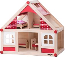 Ако и вашето момиче обожава куклите си и иска какви ли не аксесоари за тях, като например къща, то тази от "Classic World" би била добър избор за подарък. Комплектът се състои от дървени елементи за сглобяване на къща за кукли, мебели и 2 фигурки. С тях вашето дете ще може да пресъздава различни сценарии от ежедневието, както и да подреди мебелите на къщата по какъвто начин поиска, а след това може да ги пренарежда отново и отново. Трапезната маса и дивана, които са включени в комплета, могат да се трансофрмират. Масата може да стане на масичка за чай, а дивана на легло. Към комплекта е включен и параван, с ... |