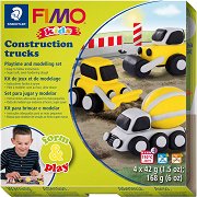 Творческият комплект включва 4 блокчета полимерна глина Fimo Kids от 42 g в сив, жълт x 2 и черен цвят, инструмент за моделиране и картинни инструкции. Глината от серията Fimo Kids е по-мека и лесна за обработка от стандартните глини на Fimo, което я прави удобна за използване от деца. Цветовете полимерна глина са подбрани, така че да са подходящи за изработването на камион, багер. Внимание: Завършените фигурки трябва да се изпекат във фурна от възрастен човек при 110°C за 30 min. За целта не трябва да се използва микровълнова печка, а само електрическа фурна. ... |