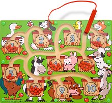 Време е да нахраним животните с откъснатите от дървото ябълки! Напълнете кофата на всяко животинче с необходимия за него брой магнитни ябълки, като ги придвижвате из лабиринта чрез магнитната пръчица. Ще разберете от колко ябълки се нуждае всяко животно, благодарение на цифрата, изписана на неговата кофичка. Характеристики: играчката включва 55 магнитни топчета-ябълки магнитните части не се вадят за по-голяма безопасност помага за развитието на фина моторика, както и научаването на животните, цифрите и броенето Магнитната пръчица е вързана към таблото, за да не бъде изгубена. ...