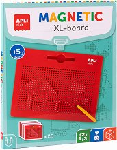 Подарете часове забавления на вашия малчуган с магическата магнитна дъска от Apli Kids. Тя се състои от малки метални топчета, които се намират в дупки. В комплекта има включена писалка с магнитен връх и 20 картончета с изобразени фигурки, детето може да пресъздаде върху дъската. А също така може да даде воля на въображението си и да импровизира! Магнитната писалка си има място за съхранение на дъската. Заниманията с комплекта спомагат за развитието на фината моторика, паметта и въображението, насърчава концентрацията и насърчава логическото мислене. Магнитната дъска е с размери 31 x 25.7 cm. ...