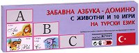 Забавното домино от "Театър "Пан"" ще помогне на малчуганите да научат турски азбука и животните, докато се забавляват. Състои се от 45 дървени плочки с двустранно лице - от едната си страна имат лепенка със съответна буква от азбуката написана печатно, а от другата лепенка с картинка на животно и буквата написана ръкописно. Някои от буквите се повтарят, за да може играещите да пишат думи и дори кратки изречения. Размерът на плочка е 5 х 2.5 cm. В комплект с доминото ще намерите листовка с правила на 10 забавни и интересни игри: Подреди азбуката Кое животно е най-бързо, най-голямо и най-силно? Къде ... |