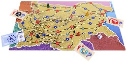 География История ... Играта е предназначена за деца над 7 години и възрастни. Могат да участват от 2 до 4 играчи. Желателно е да има водещ. Изисква се играчите да имат не само късмет, но и знания. Играта помага на децата, забавлявайки се, да научат интересни факти за градовете в България, а възрастните си припомнят знания, които имат. Подготовка на играта: Преди началото на играта се избира водещ, който ще я ръководи. Ще задава въпросите, проверява отговорите и ще извършва плащания. Всеки играч избира пионка и я поставя на стартова позиция. Картите се нареждат на купчинки, извън игралното поле с лице нагоре. “ ... |