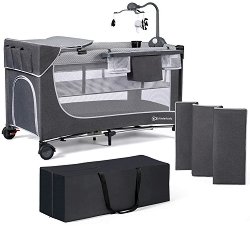 Leody на KinderKraft е компактно сгъваемо легло на 2 нива, което е практично, компактно и подходящо за използване когато сте извън дома или на почивка. Матракът има 2 позиции на височината, като това ви спестява постоянното навеждане и лесно може да приспособите височината към развитието на вашето дете. Горното ниво на кошарата е подходящо за бебета на възраст до 6 месеца или докато детето не започне да седи самостоятелно. То дава по-лесен и удобен достъп на родителите до тяхното бебе, като им спестява прекомерното навеждане над детското легло. Докато долното ниво е подходящо за почивка и игра на бебета над 6 месеца. ...