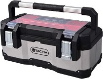 Куфарът на Tactix е подходящ за удобно съхранение и пренасяне на инструменти. Разполага с 2 подвижни странични органайзера с прозрачен капак, които улесняват достъпа до аксесоари и консумативи. Органайзерите могат да се използват и отделно при нужда. Снабден е с 2 здрави стоманени брави и стоманени крепежни елементи с антикорозионно покритие за дълъг експлоатационен живот. Има удобна алуминиева дръжка за носене и компактни размери 51 / 23 / 21 cm. ... |