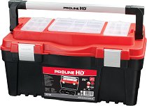 Куфарът на Proline е предназначен за съхраняване и транспортиране на инструменти. Изработен е от висококачествен полипропилен и разполага с дръжка от алуминий, осигуряваща по-добър захват. Също така е оборудван с капак, който има 2 вградени органайзера за съхранение на малки инструменти и части и разполага с метални закопчалки. Куфарът е с размери 59.8 / 32.7 / 28.6 cm. ... |
