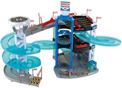 Детският паркинг от серията "Bosch Service" на "Klein" ще се хареса на всички малки, бъдещите шофьори. Той е с височина 85 cm и разполага с 5 нива, на които има множество паркоместа, с 2 успоредни състезателни рампи, двуместен асансьор и бензиностанция. Но това далеч не е всичко, към комплекта са включени 2 колички и множество аксесоари, с които игрите да бъдат още по-вълнуващи. Малчуганите ще могат да се забавляват с часове, докато се състезават по рампите със своите автомобилчета от най-горното та чак до най-долното ниво. Като след всяко спускане ще могат да качвате количките със специалния двуместен ... |