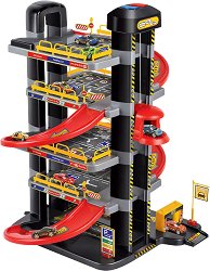 Подарете едно страхотно забавление на малките палавници, които обичат количките. Те ще се радват на автентичните мини модели на някои от най-известните марки автомобили в света. Децата могат да ги карат по пистата, която е разположена на 3 нива и е пълна с множество интересни функции. Вниманието на малките шофьори ще бъде привлечено от състезателните звуци и подвижният асансьор. Вътре ще открият, също така и бензиностанция, където ще могат да паркират и “зарежда” количките. Бариерите се вдигат и спускат, в момента щом пред тях застане някоя от количките. Засилете малките автомобилчета от стартовият пункт горе и те ще ... |